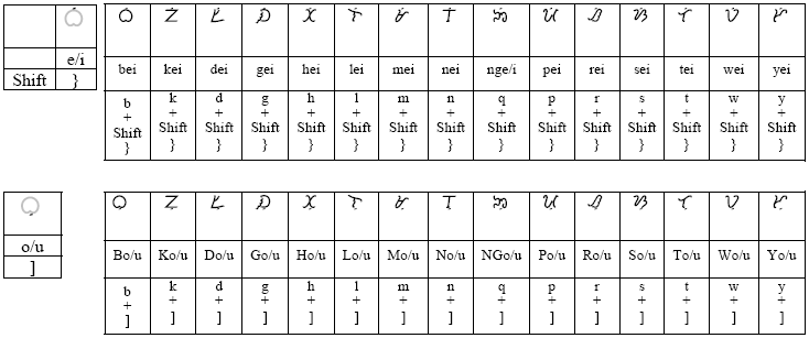 (lowercase), kai ya napindit a tumbok nin Shift,